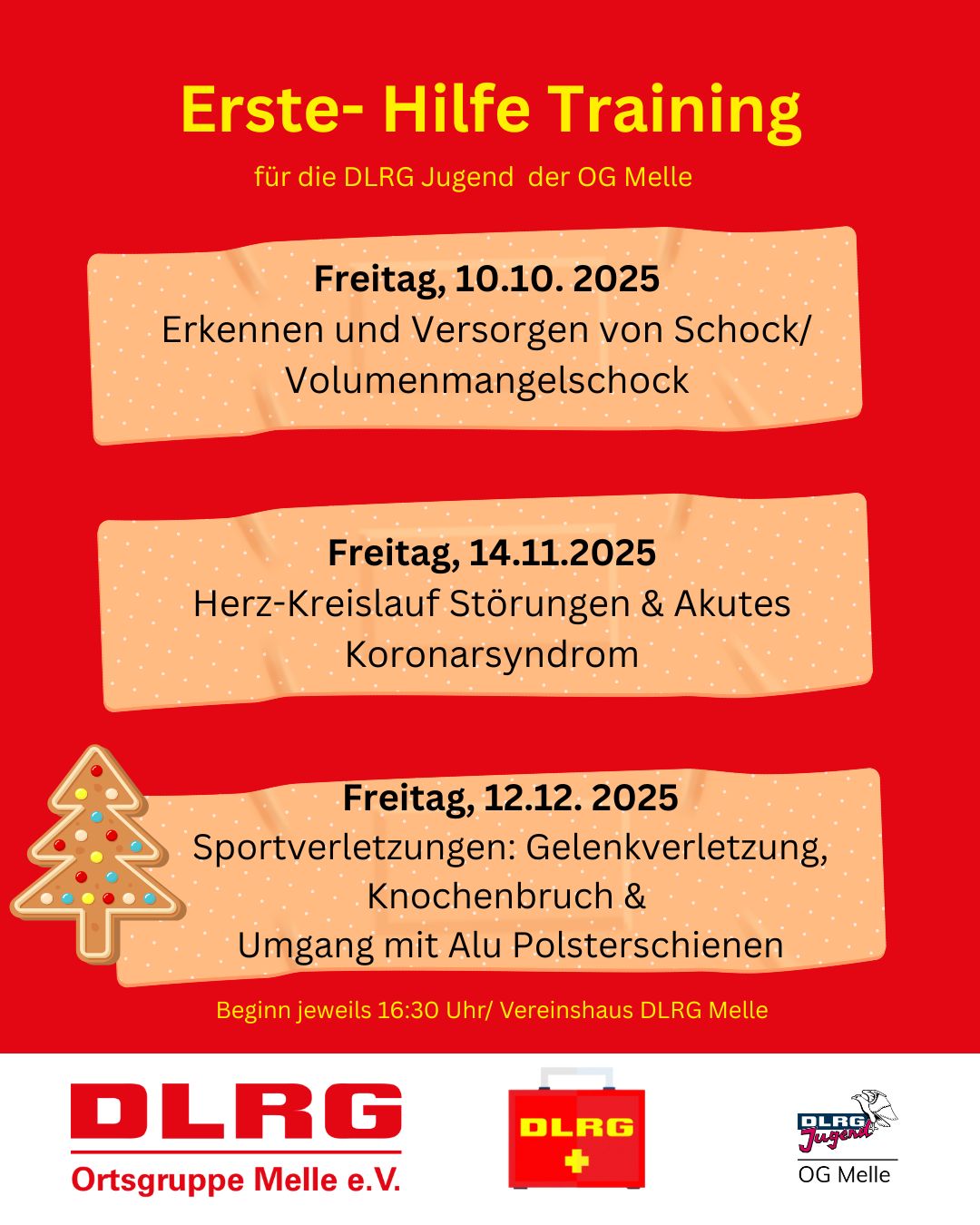 Die DRLG OG Melle bietet aktuell keine eigenen Erste-Hilfe Kurse an, aber ein regelmässiges Erste Hilfe Training für unsere Mitglieder.
